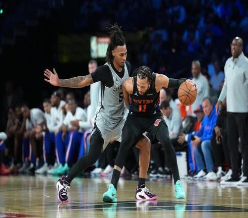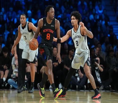 比賽回歸:首節(jié)比賽便火花四濺。尼克斯這邊明確主攻方向,布倫森與阿奴諾比扛起進(jìn)攻大旗,兩人合力砍下 19 分,包攬球隊(duì)首節(jié) 28 分中的絕大部分;馬刺則延續(xù)多點(diǎn)開花的風(fēng)格,首節(jié) 9 人輪換中有 7 人斬獲得分,在膠著的拉鋸戰(zhàn)中以 2 分優(yōu)勢(shì)領(lǐng)先結(jié)束首節(jié)。次節(jié)戰(zhàn)局依舊膠著,馬刺雖未能拉開分差,但始終穩(wěn)穩(wěn)掌控領(lǐng)先優(yōu)勢(shì)。尼克斯進(jìn)攻端依舊依賴布倫森與阿奴諾比的雙核驅(qū)動(dòng),全力追分;馬刺則持續(xù)多點(diǎn)發(fā)力,共有6人得分上 6,帶著 2 分領(lǐng)先優(yōu)勢(shì)進(jìn)入下半場(chǎng)。