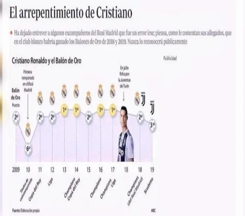 2019年12月,西班牙第3大報刊《ABC報》:C羅已后悔加盟尤文圖斯